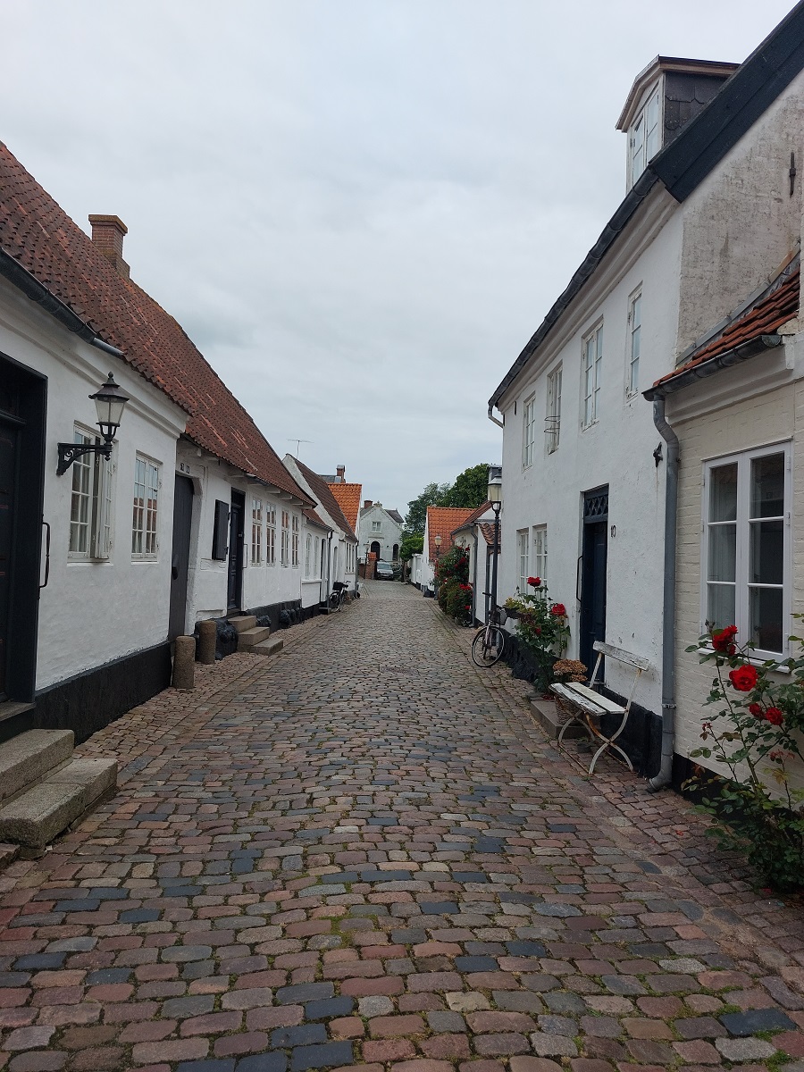 Dann geht es mit Tenderbooten zum Landgang in das kleine Örtchen Eroskobing mit 932 Einwohnern auf der Ostseeinsel Arrö, dänisch Ærø. Im kleinen Hafen machen die Boote am Kai fest, eine trockene Landung, obwohl bei Wellengang die Meeres-Gischt ab und zu ins Boot spritzt. Ein Spaziergang führt durch einen idyllischen Ort mit kleinen beschaulichen Häusern. Langstielige Blumen an den Türen und große Rosenbüsche an den Hauswänden stehen Spalier. Auf einem kleinen Hügel am Ende der Hauptstraße thront eine historische Windmühle aus dem Jahr 1848. Überall in der Stadt warten auf den Besucher in schön gestalteten Innenhöfen Restaurants, Cafés und Eisdielen. Allerdings kosten beispielsweise zwei Kugeln Eis 47 dänische Kronen, umgerechnet 6,30 Euro - für deutsche Urlauberfamilien kein Sparpreis. Das Stadtzentrum von Eroskobing mit seinen kleinen Häusern wird durch eine Kirche überragt, die Mitte des18. Jahrhunderts errichtet wurde. Anziehungspunkte sind hier das Taufbecken aus dem 13. Jahrhundert und eine äußerst kunstvoll geschnitzte und mit Figuren geschmückte Kanzel aus dem 17. Jahrhundert, die noch aus der mittelalterlichen Vorgänger-Kirche stammen. Wie in vielen Kirchen an den Meeresküsten hängen hier zwei große Modelle von Segelschiffen - überall trifft der Besucher in Jütland auf historische Spuren.
